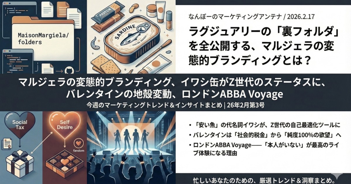 忙しいあなたのためのマーケティング情報サプリメント。 週に一度、厳選されたトレンドと洞察を効率よくインプットして、明日からのアイデアに活用しよう!
