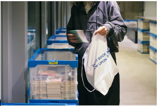 仕掛けたのは古本のオンライン買取・販売大手バリューブックス。銀座ソニーパークの地下2階に約2万冊の古本を並べ、誰でも自由に入って好きなだけ古本に触れ、読める空間を作った。入場は無料。座って何時間読んでもいい。気に入った本があれば、1,800円のオリジナルトートバッグを買えば5冊まで持ち帰れる。