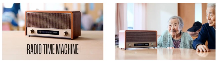ニチイ学館が介護施設への導入検証を始めた「RADIO TIME MACHINE」。TBWA HAKUHODOが開発したAIラジオ機器で、仕組みはめっちゃシンプル。1950年代ラジオをモチーフにした筐体にダイヤルがついていて、回すと1950年から2025年まで1年刻みで針が動く。聴きたい西暦に合わせると、その年の「今日」のニュースとヒット曲がラジオ番組風の音声コンテンツとして流れてくる。コンテンツはAIが毎日自動生成している。