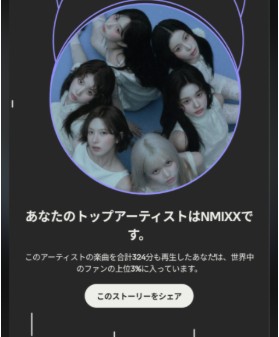 ちなみに僕のトップアーティストはNMIXXでした。本当に曲が良いのでぜひ聞いてみてください!